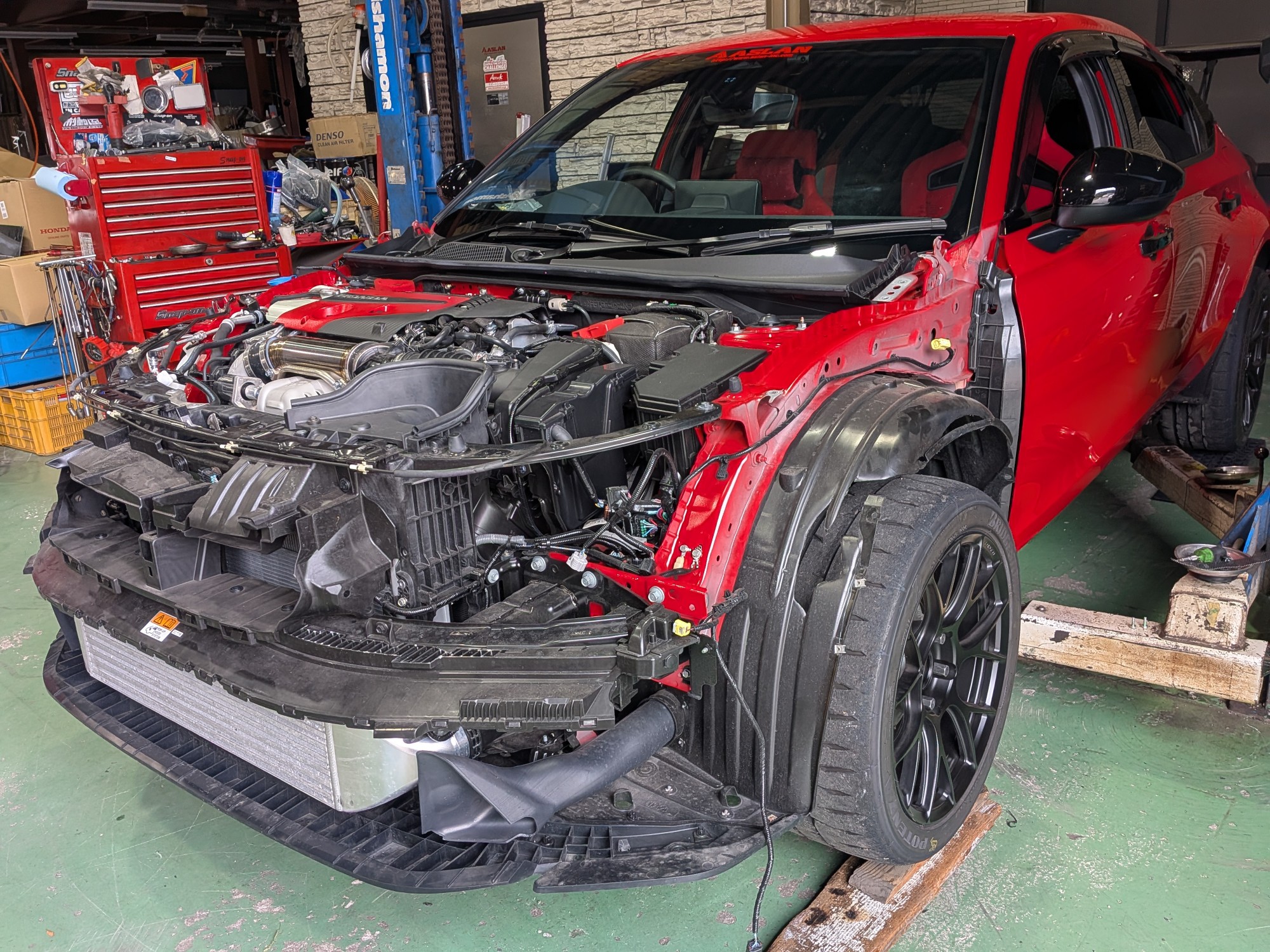 ドライカーボン製フロントフェンダー&ボンネット交換です。