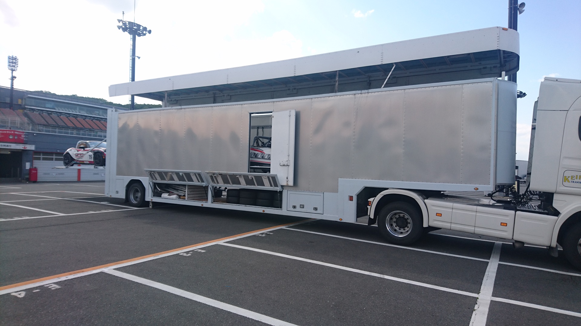 チームが用意してくれた大型トレーラーで運搬です♪