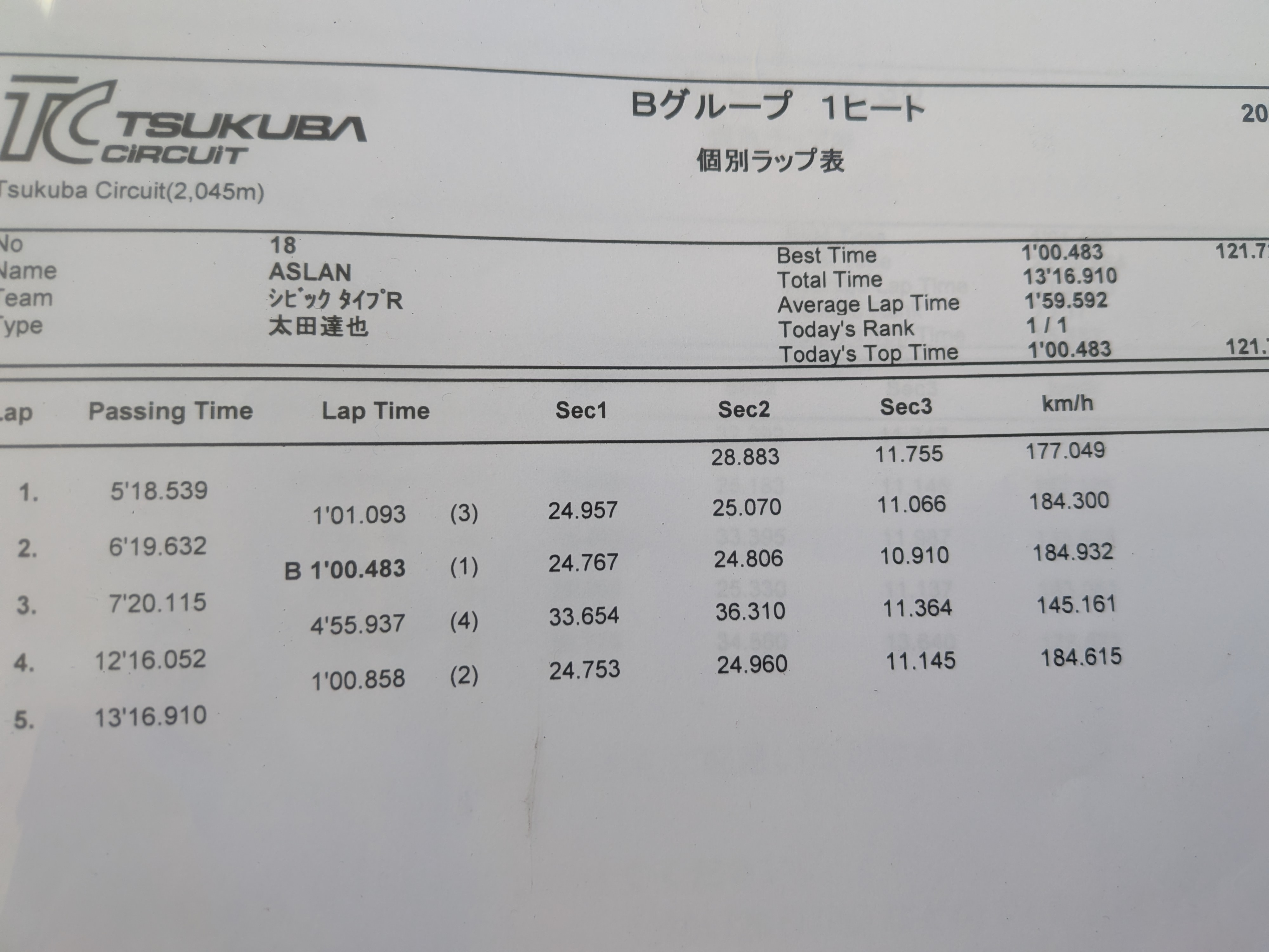 無念の1′00秒483でした。